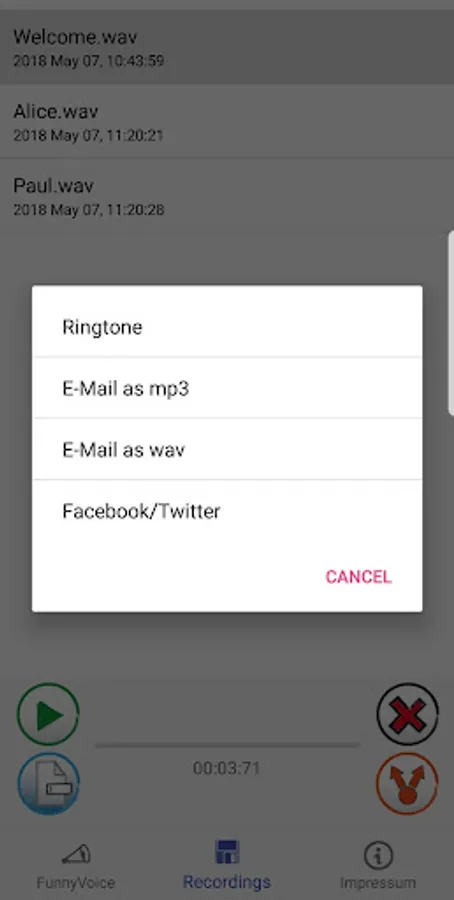 - Post a message to Facebook or Twitter from the FunnyVoice app.