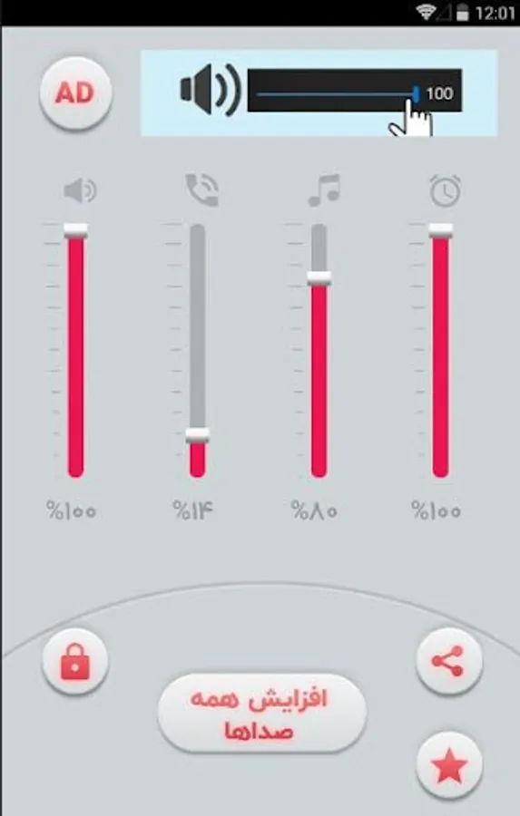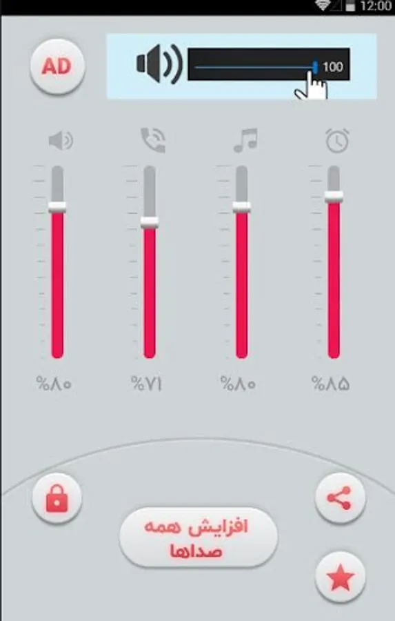 Using this northern program, you can easily see the amount of different types of sounds on your phone or tablet, such as ringtones, system sounds, etc., and easily and with the push of a button, amplify all these sounds and put them in a high state. .