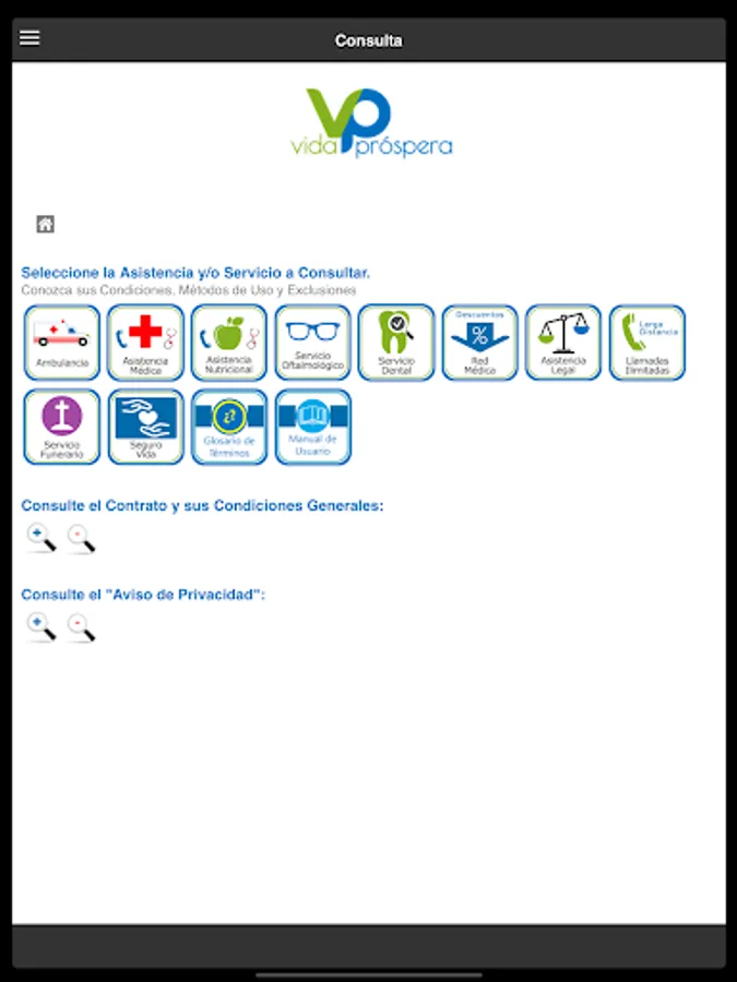 With the Prosperous Life Application, a Client can directly access the Care Services, Development Contents and General Conditions; For its part, a Promoter may access the aforementioned, as well as the Training Contents, and the functionalities of the Recruitment management, and the Marketing of the "Prosperous Life" Benefits Package. The "Prosperous Life Benefits Package" has a very affordable price for all types of customer profiles, and is integrated by 12 assistances: