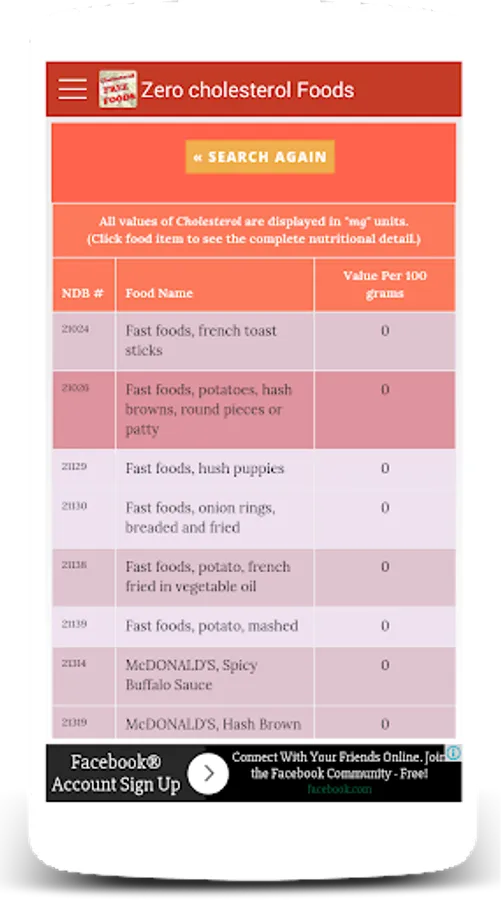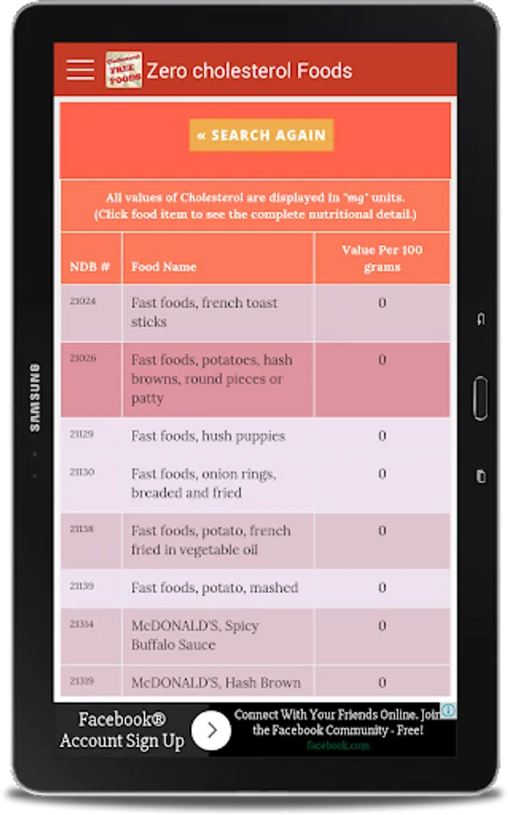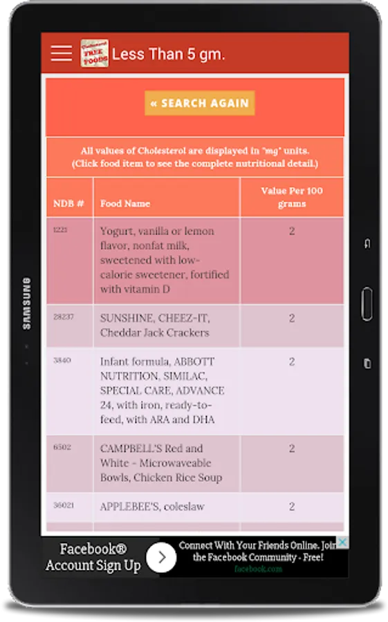 • 100 plus foods having cholesterol less than 1 gm. (per 100 gm. of food item)