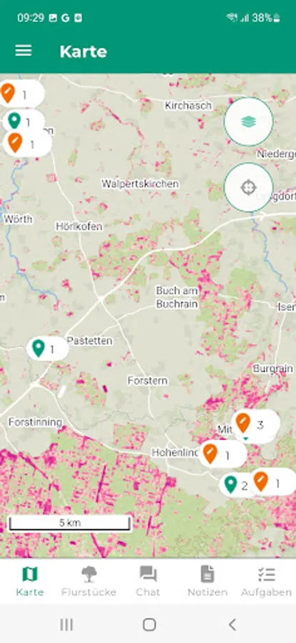 WoodsApp Pro supports you in keeping an eye on your customers' forest parcels - without having to be on site all the time. By using and processing current satellite images, the app helps to identify vitality problems and other risks at an early stage. You can document your observations in the form of map notes as points, lines or areas in WoodsApp Pro and share them with other forest stakeholders. And last but not least, WoodsApp Pro enables direct communication with your customers and colleagues!