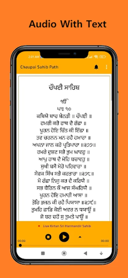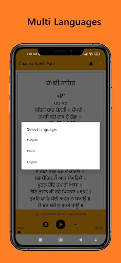 - The app offers 'Chaupai Sahib' in multiple languages: