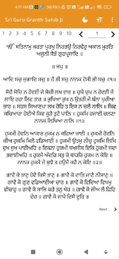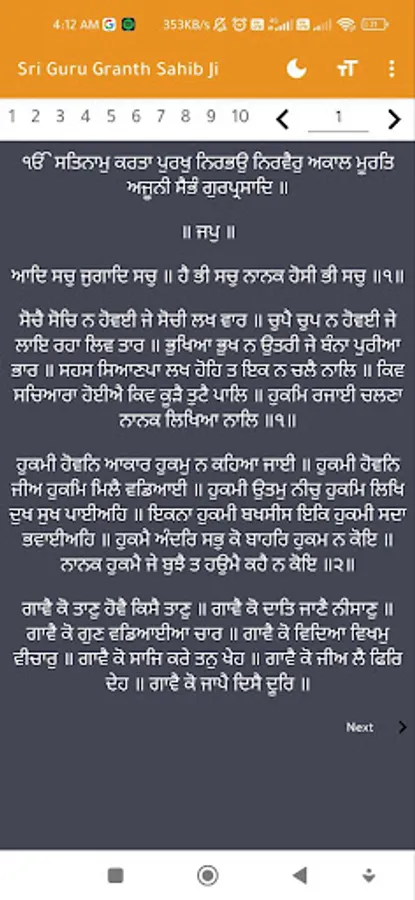 "Sri Guru Granth Sahib" is the central religious scripture and the holy book of Sikhism. It is a collection of hymns and writings by Sikh Gurus and various saints and poets from different religious backgrounds. This sacred text is considered the final and eternal Guru by Sikhs and is revered as a source of spiritual guidance, wisdom, and divine inspiration. It contains teachings on meditation, morality, devotion, and the path to spiritual enlightenment. The "Sri Guru Granth Sahib" is recited, sung, and respected in Sikh places of worship, and it plays a pivotal role in Sikh religious practices and beliefs.