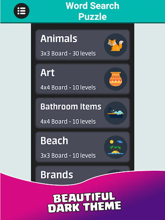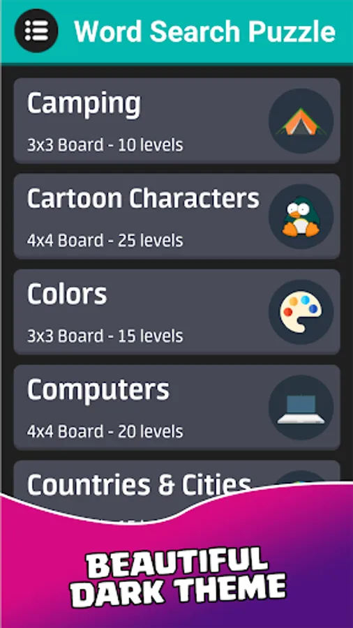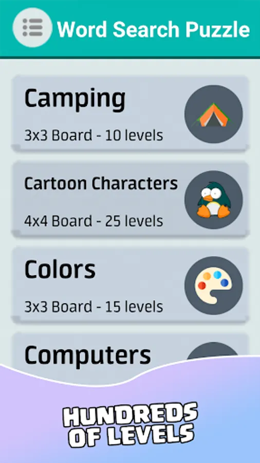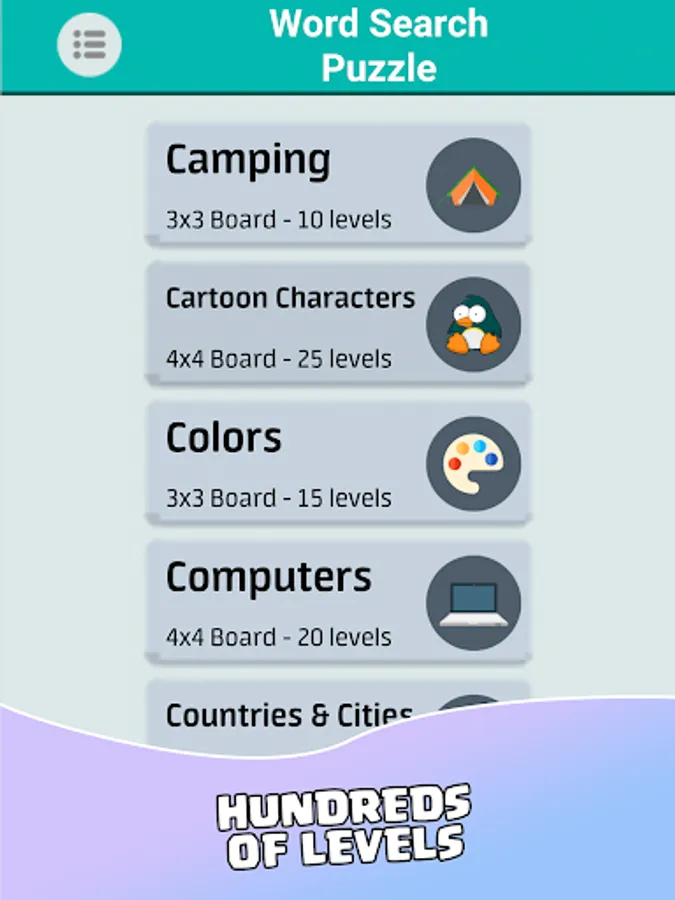 There are hundreds of fun puzzle levels in numerous categories. All the categories in the find the word challenges are fun to play. Each find a word puzzle level has been designed carefully. So, grab this wordsearch for free now.