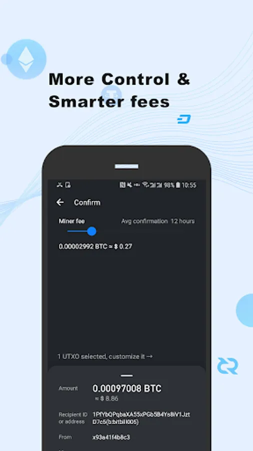 The mnemonics, seeds (used to generate private keys) of Ownbit wallet are encrypted and stored on the phone side. The private key is completely under your control. In addition, you can control more aspects of your wallet.