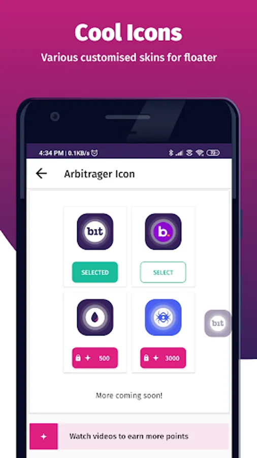 Think arbitrage is all you can do on Arbitrager? Think again. Earn points for arbitraging on the app and spend them to get new kool cickass icons for the floater button.