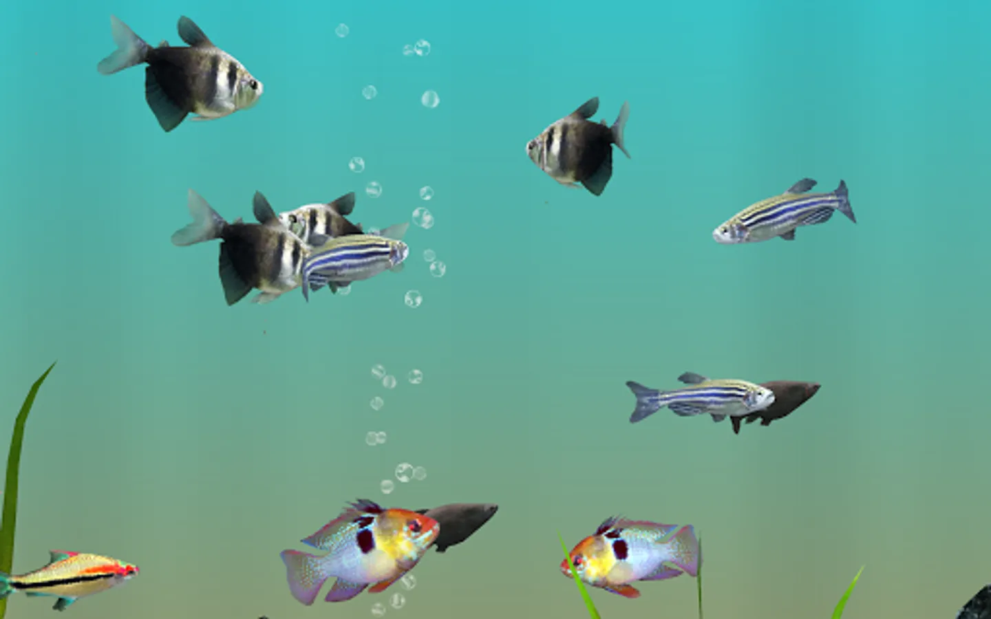 - Customize up to five aquariums, selecting backgrounds, accessories, and the perfect mixture of species