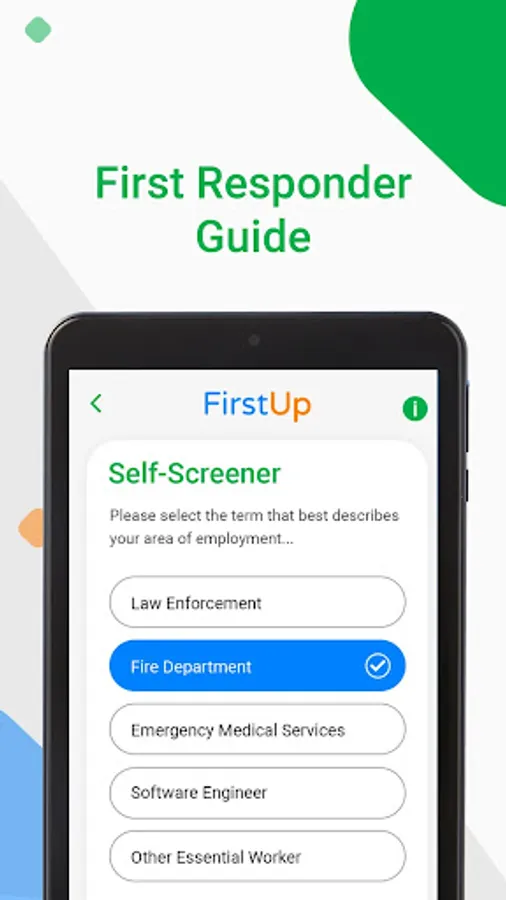 Enter information about your symptoms, travel, medical conditions and pandemic exposure. If prompted, communicate the results with your department infection control officer (DICO) or your organization’s health specialist to schedule priority testing at a FirstUp.