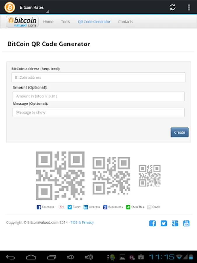 - BitCoin QR Code Generator for BitCoin Address, Amount (Optional) and message (Optional).