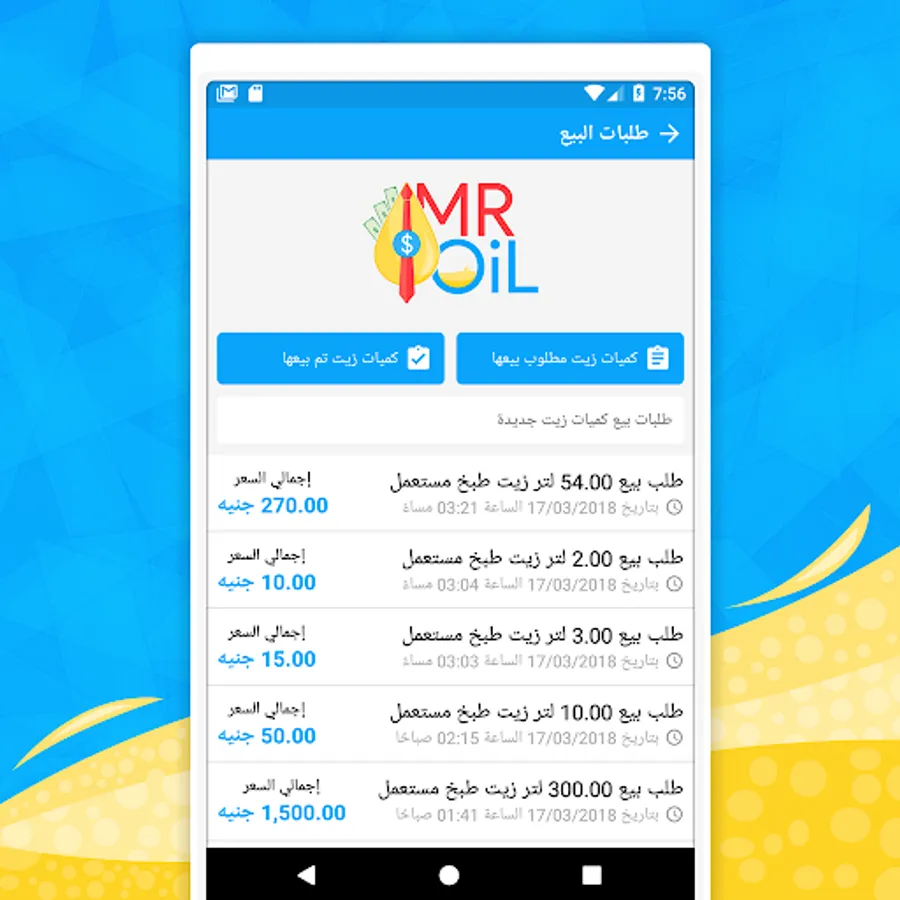 مع ابلكيشن Mr OiL هنشتري منك اي كمية زيت طبخ مستعمل بكل سهولة وهتستفيد بفلوس على كل لتر زيت تبيعه..