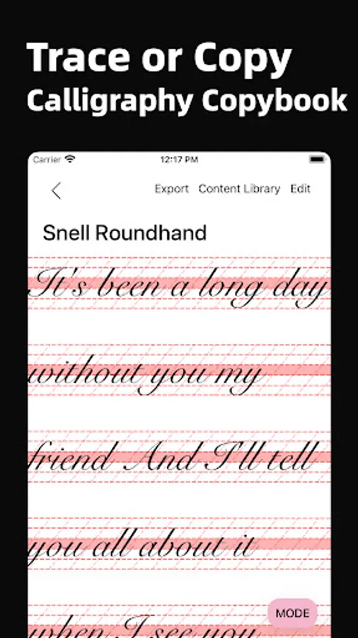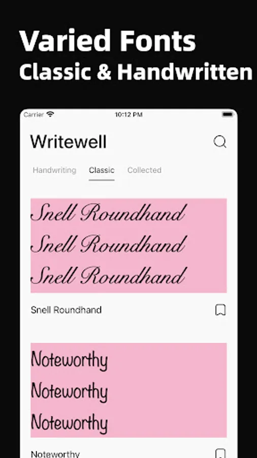 Writewell is a copybook app designed for English language learners. It can automatically generate English copybooks on Mobile Phone、Pad, and supports export and printing. The application is equipped with a variety of fonts that are popular among candidates and English calligraphy enthusiasts, including Hengshui, ES, Copperplate copper plate printing, Italic Italic, Uncial Ansel font, Spencer Spencer font, Gothic Gothic, Business Penmanship cursive, Cadels floral, and more. In addition, Writewell perfectly supports Apple Pencil, making it easy for you to copy or paint red. Download Writewell now and enjoy creating beautiful English copybooks!