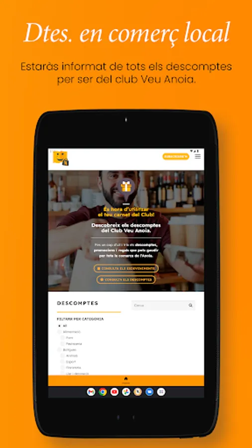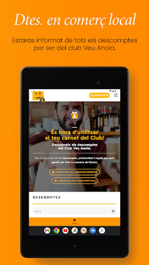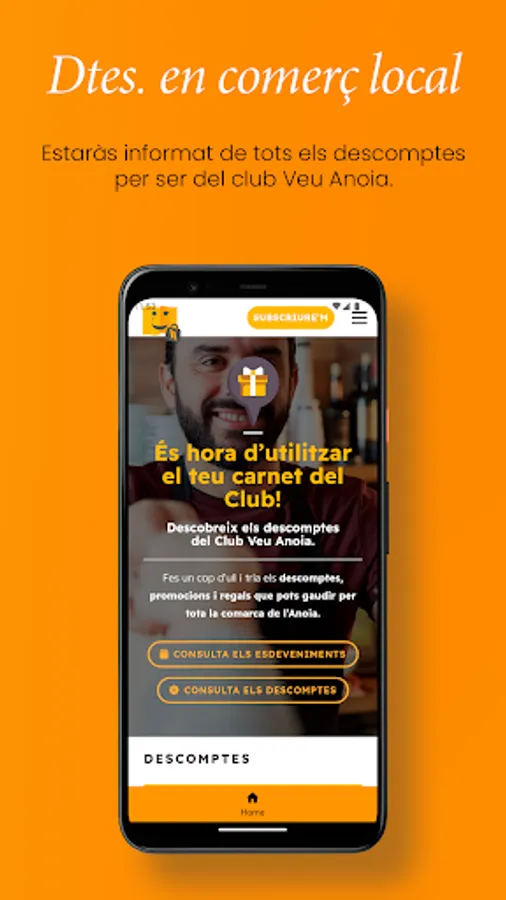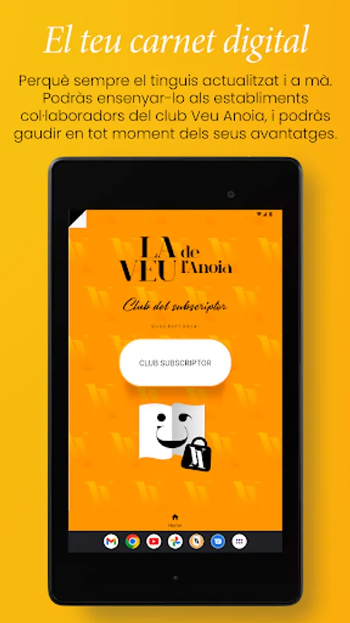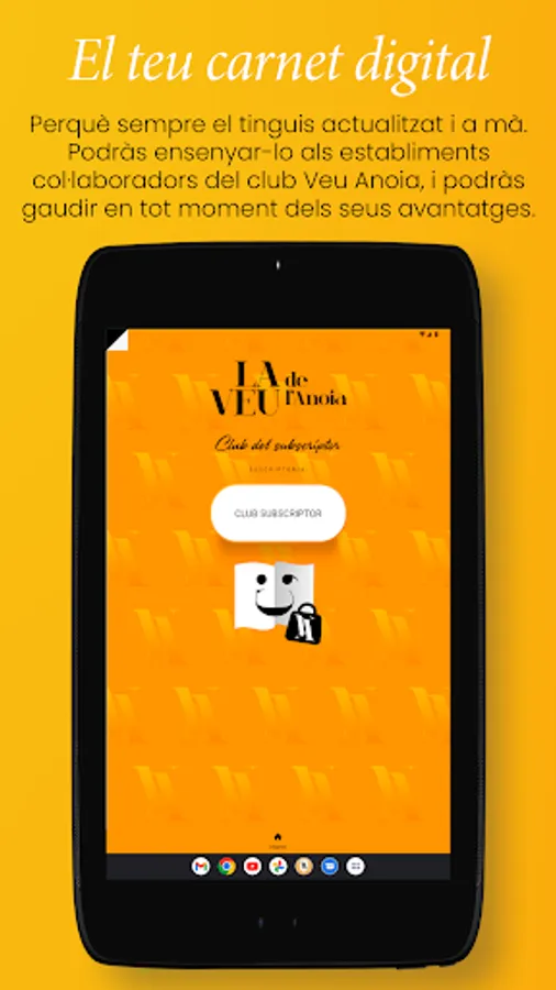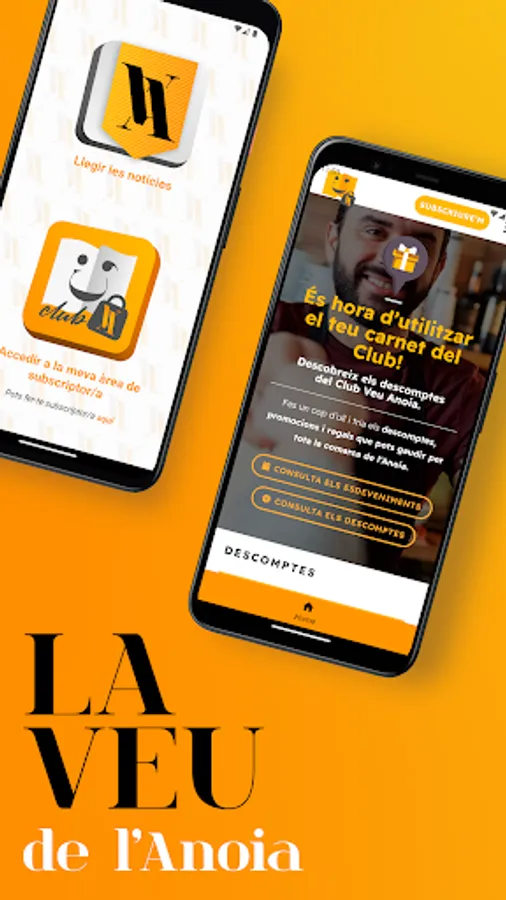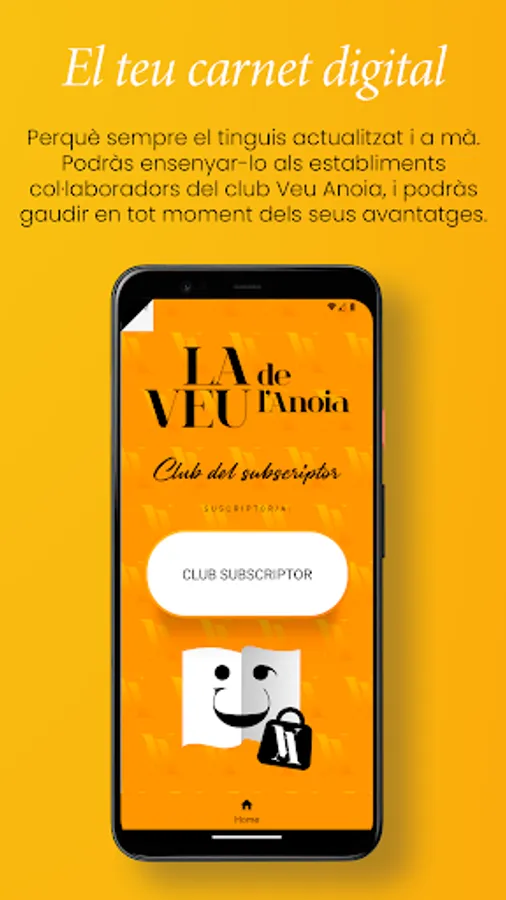 . Subscribers to the printed edition of La Veu de l'Anoia have advantages (discounts) throughout the region by signing in with the digital card (which you can also download from this application in the private area) or physical