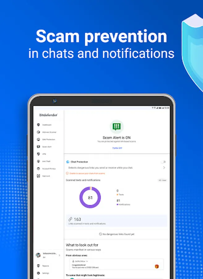 ✔ Scam Alert - keeps you safe from phishing, scams and frauds by scanning suspicious links received via texts, messaging apps and notifications.