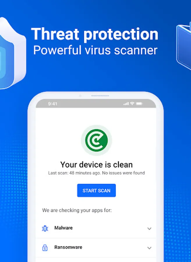 ✔ Virus & Malware Scanner - 100% detection rate against viruses, malware, adware, ransomware; on-demand & on-install virus scan and malware removal.