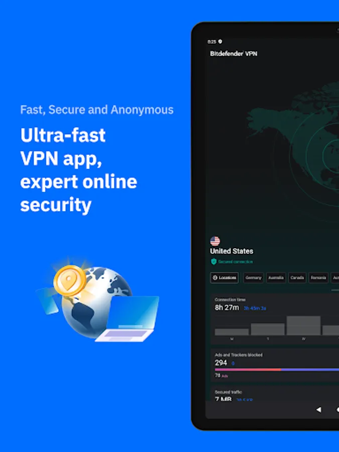Bitdefender VPN is a fast and secure VPN app powered by a global cybersecurity leader. Protect your online privacy, browse anonymously, and access your favorite websites anywhere in the world. Unlimited VPN access to secure your Internet connection on up to 10 devices cross-platform (Android, Windows, Mac, iOS).
