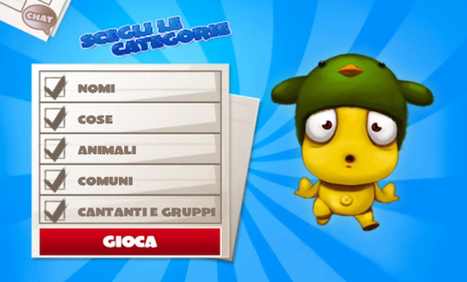 - fino a 16 categorie personalizzabili con cui giocare