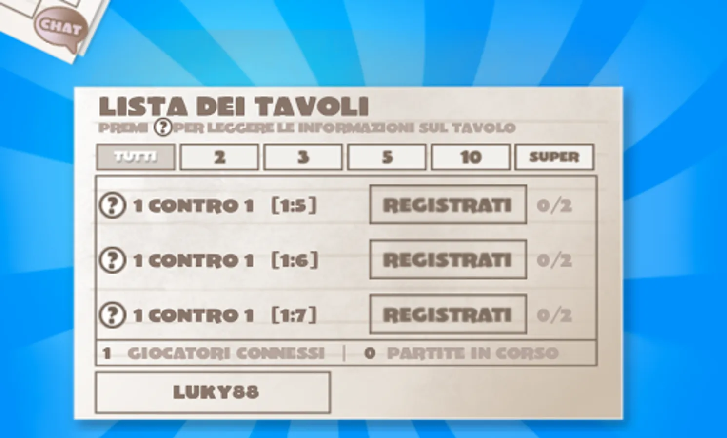 Scegli tra i tantissimi tavoli disponibili a quale registrarti.