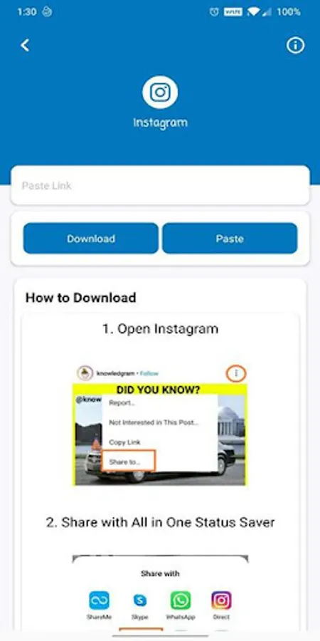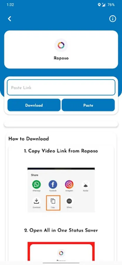 2. Instagram Video and Image downloader , Instagram Status Downloader Just copy the video or image link to Eazy video Downloader or share it to our app , and you can download it .