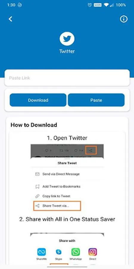 4. Twitter Video Downloder : Twitter videos can be downloaded by copy pasting its link or sharing video to Eazy Video Downloder.