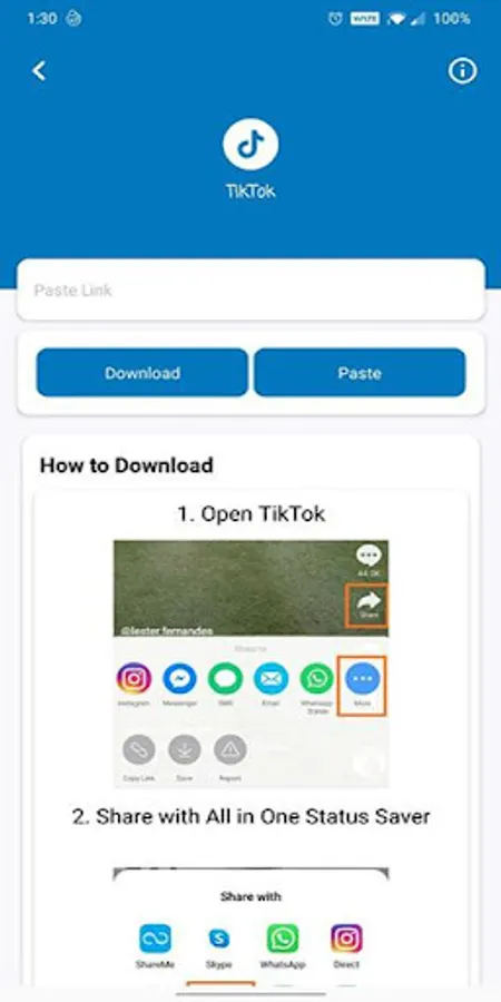 3. Tiktok Video Downloader : Eazy Video Downloder can download TikTok videos by copy pasting its link or sharing video to Eazy Video Downloder.