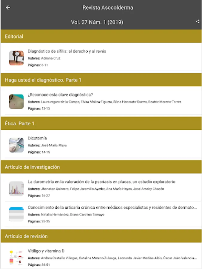 El título abreviado de la Revista Colombiana de Dermatología y Cirugía Dermatológica es Rev Asoc Colomb Dermatol. que debe ser usado en las notas al pie de página, leyendas de figuras y referencias bibliográficas.