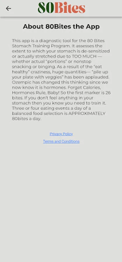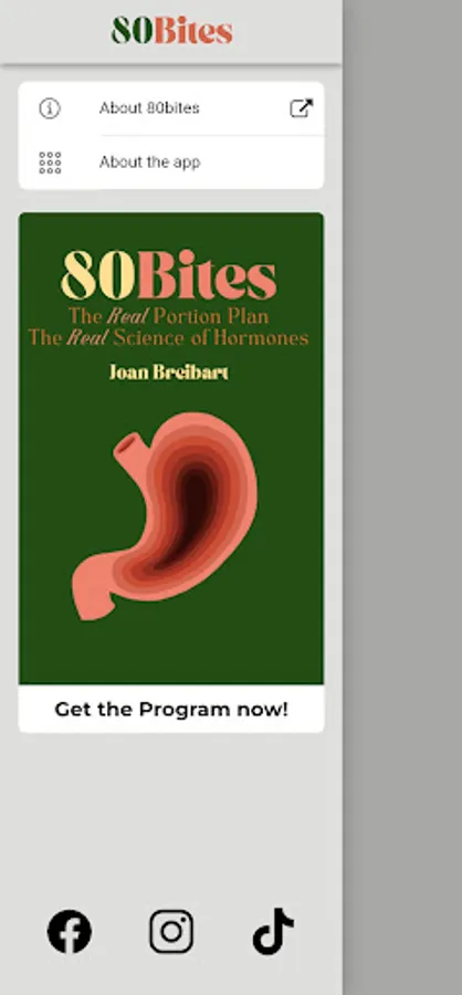 Created by Registered Dietician Meredith Luce RD MS LN and Pilates Expert Joan Breibart, the 80Bites App precedes the 80Bites Program — 12 STEPS developed to downsize hunger — just like Ozempic! Shedding pounds happens automatically when your hunger is tamed. Visit 80Bites.com to subscribe to the 12 STEP Stomach Training program and ditch dieting for good!