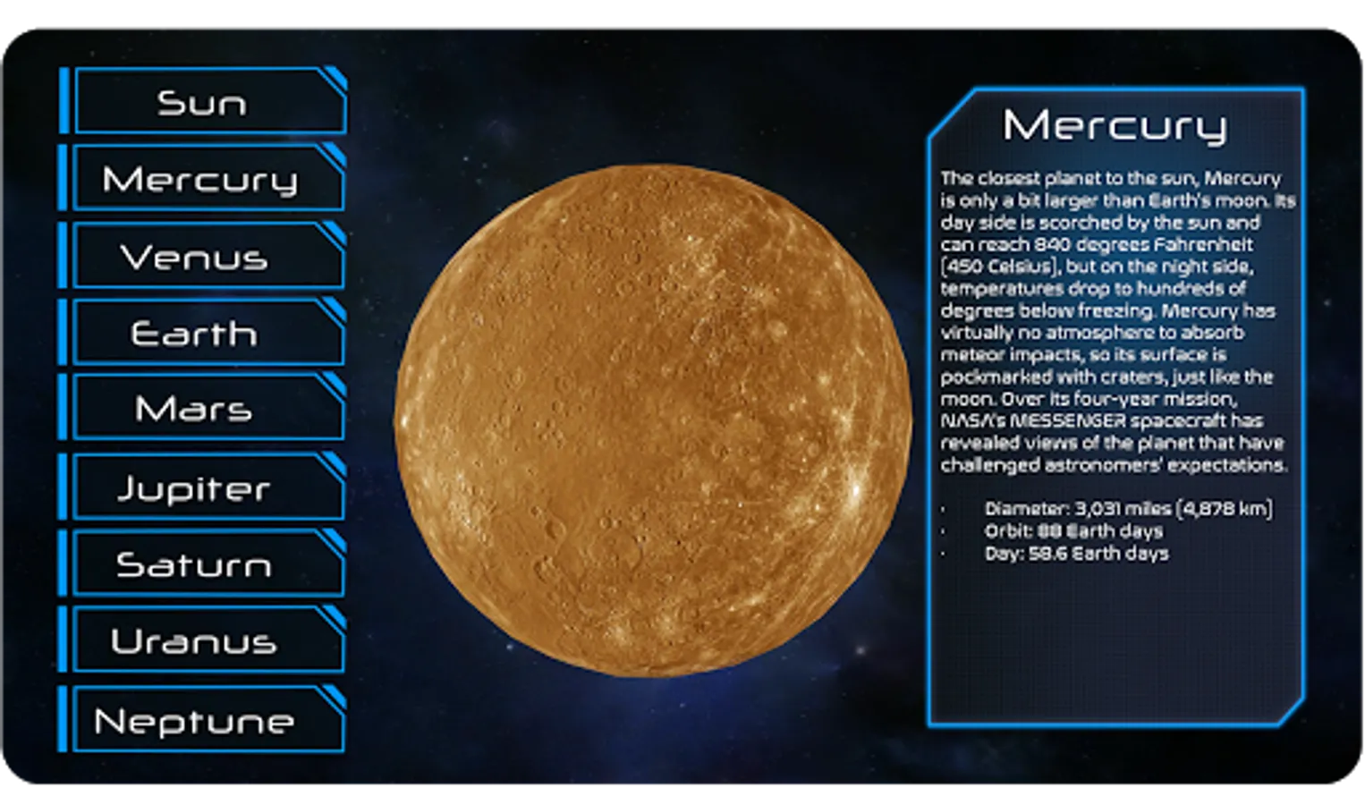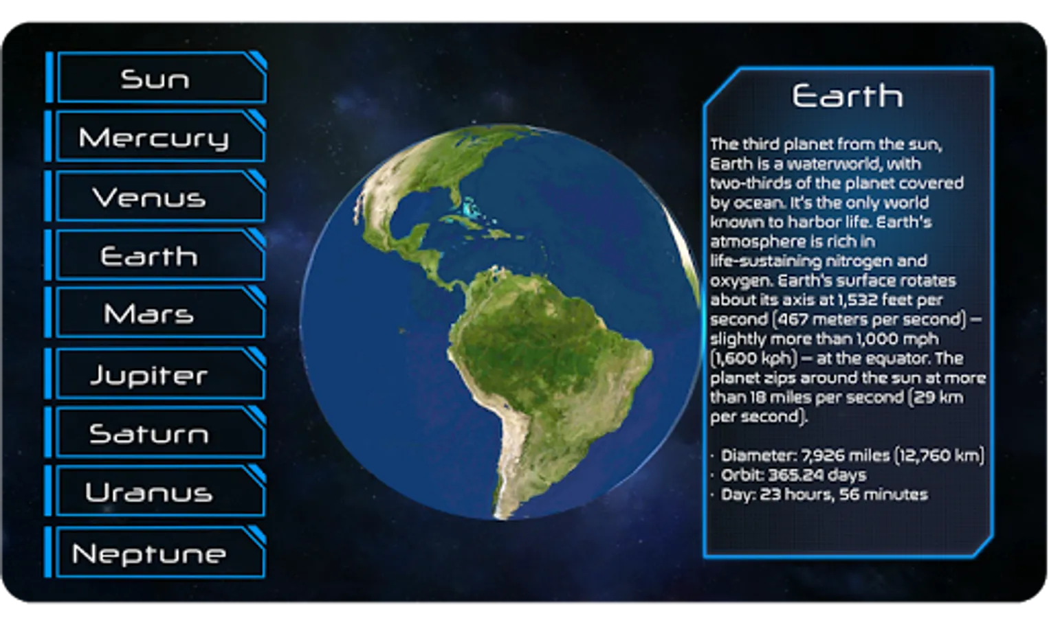 A 360 experience, live and learn in the first person, as an astronaut, the experience of traveling in the solar system.