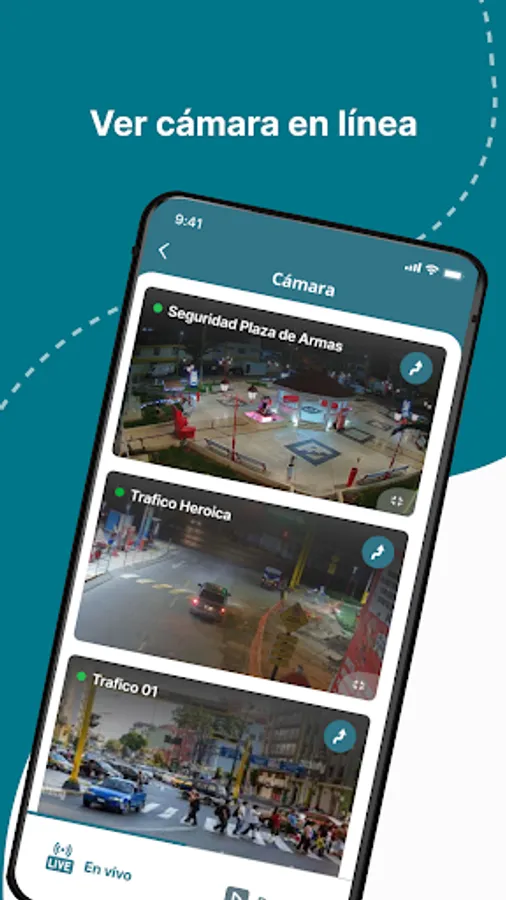 - Ver cámaras de seguridad y reporte de tráfico en la zona.