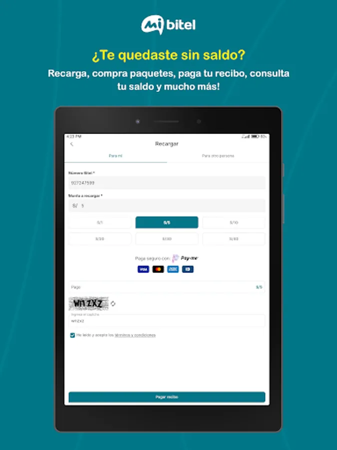 - Now you can pay your receipt or recharge with any Visa, Mastercard, Amex card, etc.