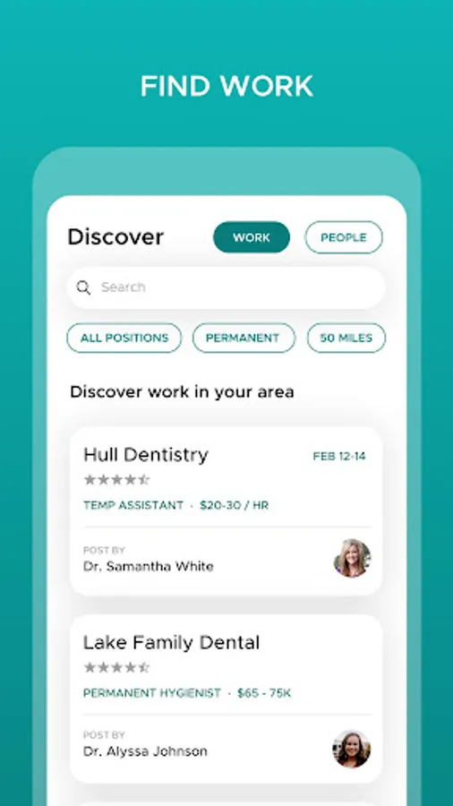 Biteline connects dental professionals to temporary or permanent jobs in their area. Whether you’re a seeker or poster, we make finding gigs easier so you can spend more time caring for patients. Sign up now to join a growing community, quickly find positions that match your credentials or needs, and get to work.