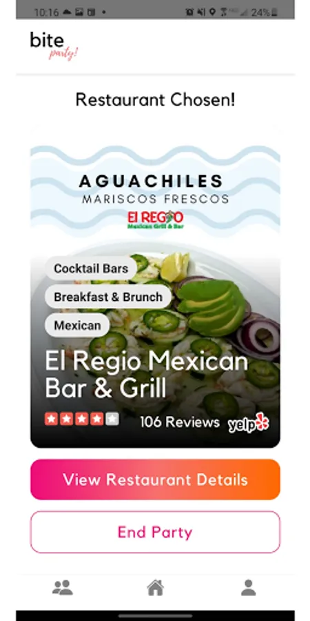BiteParty is your go-to app for finding new restaurants. Discover new eateries based on reviews written by the community. Whether you are looking for a place to watch the game, brunch with friends, or a late-night drink, we’ve got you covered. Open the app, swipe right or left and instantly view a restaurant’s information such as address, photos, reviews, and much more.