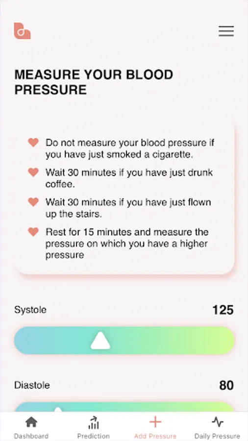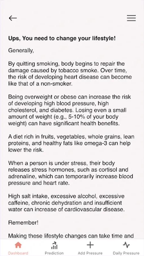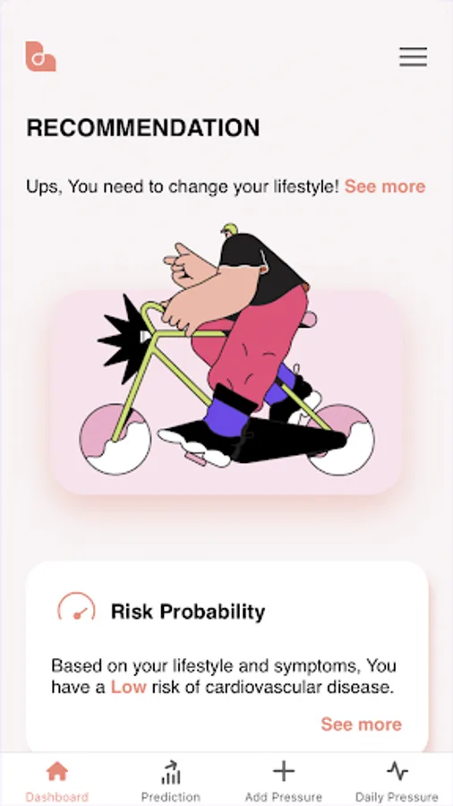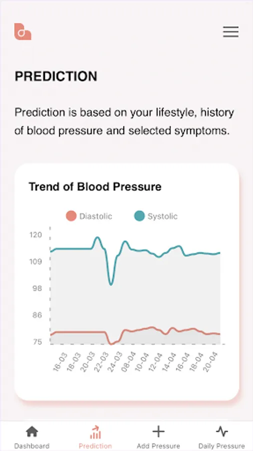 As a result, BiteriumAI generates evidence-based, practical recommendations on how to stay healthy, avoid unnecessarily delayed healthcare appointments, and save money. It also predicts blood pressure over the next few days, and in case of urgency, advises you to visit a doctor.