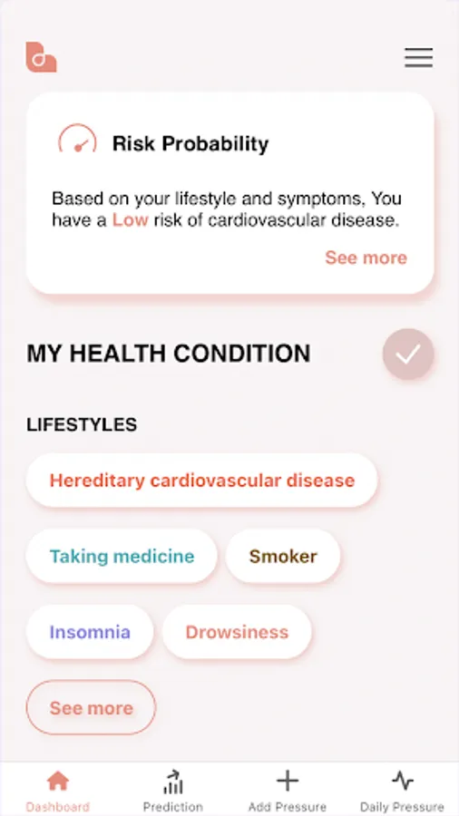 BiteriumAI collects your lifestyle, symptoms, and daily blood pressure. Furthermore, you can share your daily lifestyle and blood pressure from the Health application.
