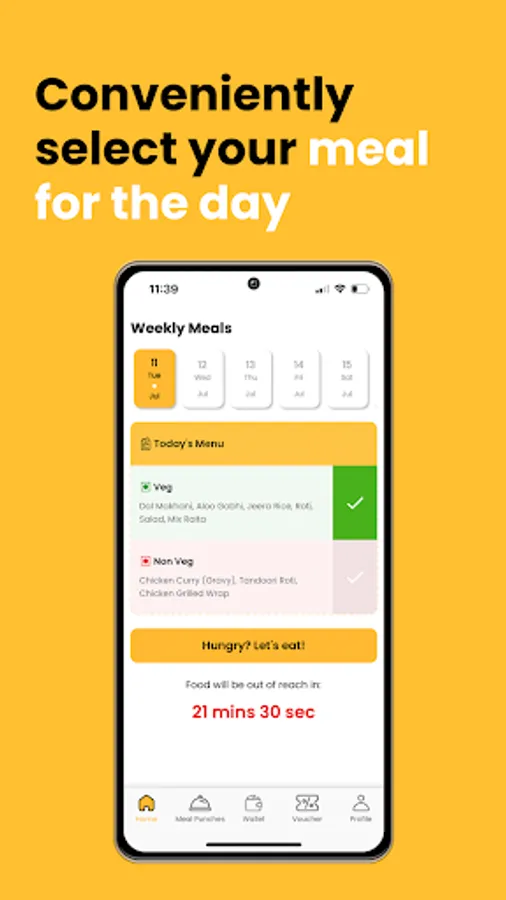 Within the app, employees are presented with a range of useful features. The home screen offers a convenient calendar view, allowing employees to select their desired meal for a specific date. Whether it's the mouthwatering vegetarian thali or the tantalizing non-vegetarian thali, employees can make their selection with just a few taps. Confirm the booking, and your meal is secured!