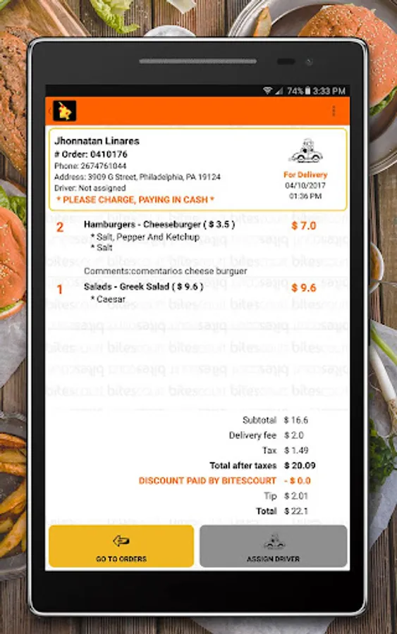 Bitescourt Services is a third-party marketplace for customers to view and place orders for food and beverages with options for pick- up or delivery services in connection with participating restaurants. We’re dedicated to getting your order to you as fast as possible, the delivery time range between 20 to 80 minutes, depending on traffic, weather and distance from the restaurant of your choice to the final destination. Download free today!