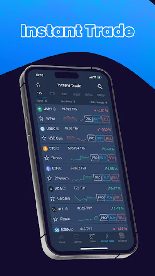 Watch the prices of BTC, LTC, NEO, ETH, XRP, XLM, ADA, LINK and more than three hundred cryptocurrencies and digital altcoins instantly with tradingview. If you wish, you can see and filter all the trading pairs on the Instant Buy-Sell screen without logging into the application.