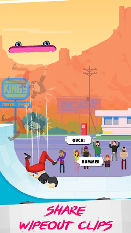 This is a free and awesome arcade skateboarding game featuring retro pixel graphics that's easy and quick to play. Tap to build speed, do flips, pull off sweet tricks and nail each landing as you go faster and higher on the half-pipe. Nail those landings and grind your way to victory!