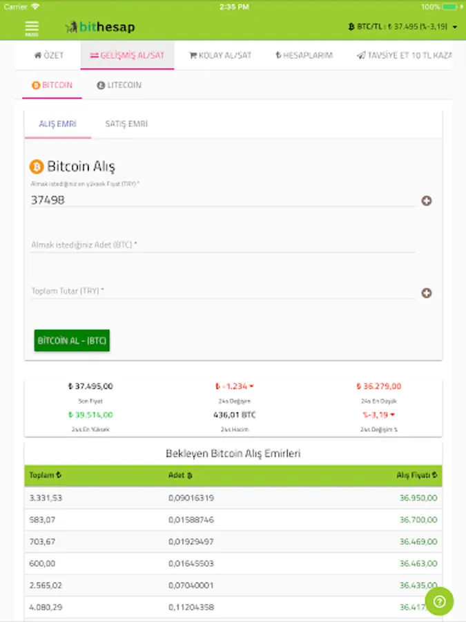the easiest and most secure way to exchange platform where you can purchase in Turkey can open an account of a Bitcoin as Bithesap free member and the Turkish lira can easily earn money by selling your Bitcoin-denominated crypto money in your hand in Bitcoin alabilirsiniz.bitco price rises again on Bithesap.