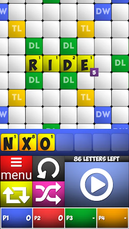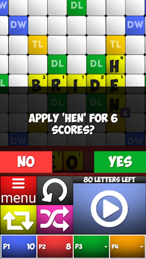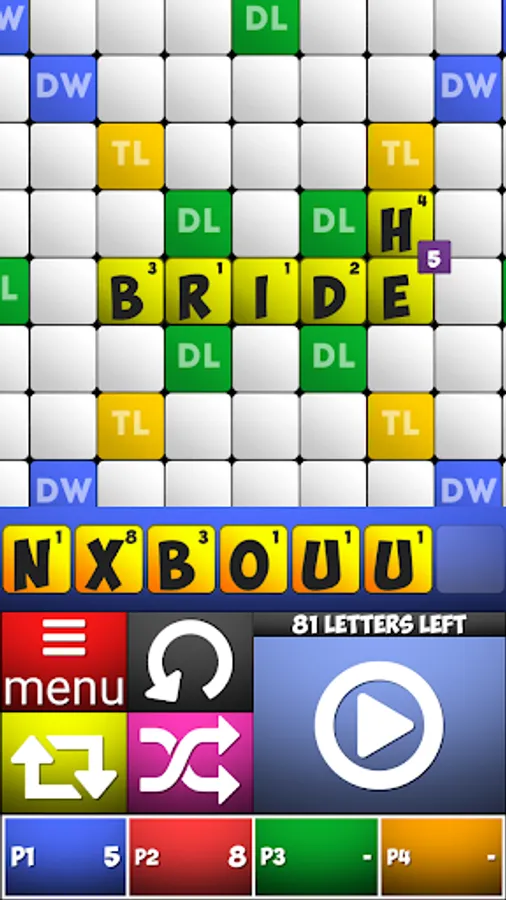 Triple Letter Score(TL) - This is a yellow cell on the board. The tile placed on this square has its points multiplied by three.