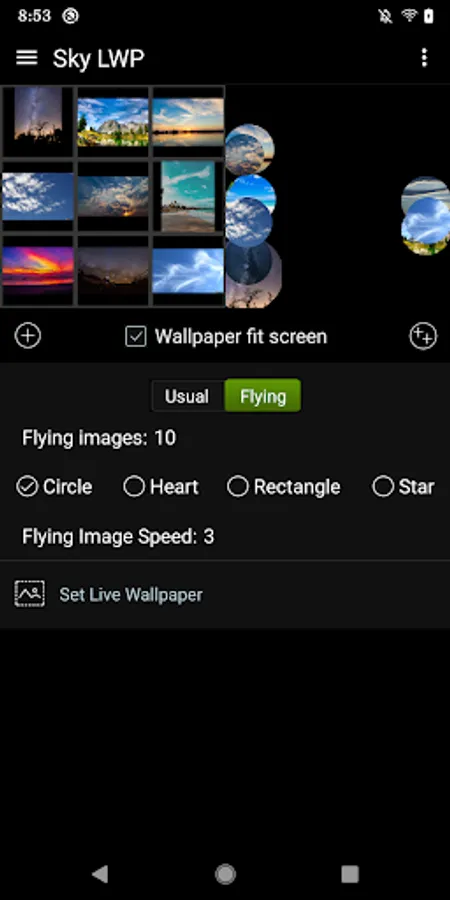 Beautify your home screen wallpaper. You can choose between flying and usual settings.