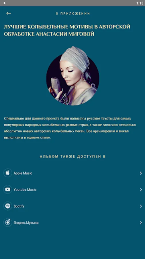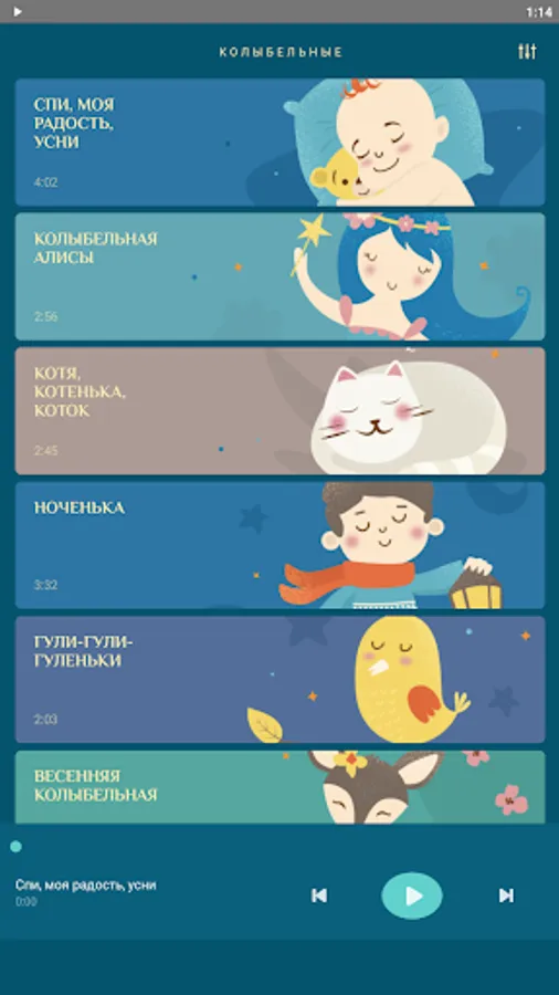 Especially for this project, Russian texts were written for the most popular folk lullabies from different countries, and several completely new author's lullabies were recorded. All arrangements and vocals are made in the same style.