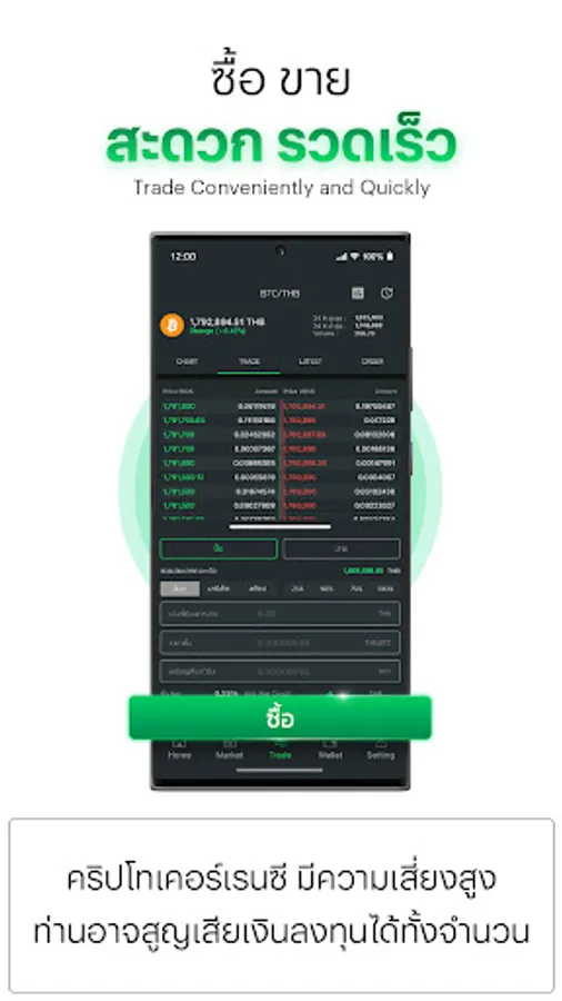Bitkub ให้ความสำคัญกับความปลอดภัยของสินทรัพย์ของคุณเป็นอันดับแรกเสมอ แอปฯ ของเราจึงรองรับ Pin Code, 2-Factor Authentication, และข้อมูล Biometric หรือสแกนนิ้ว เพื่อความปลอดภัยสูงสุด