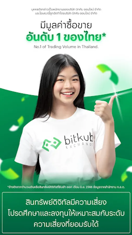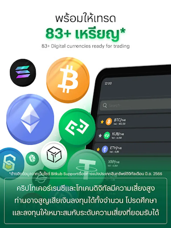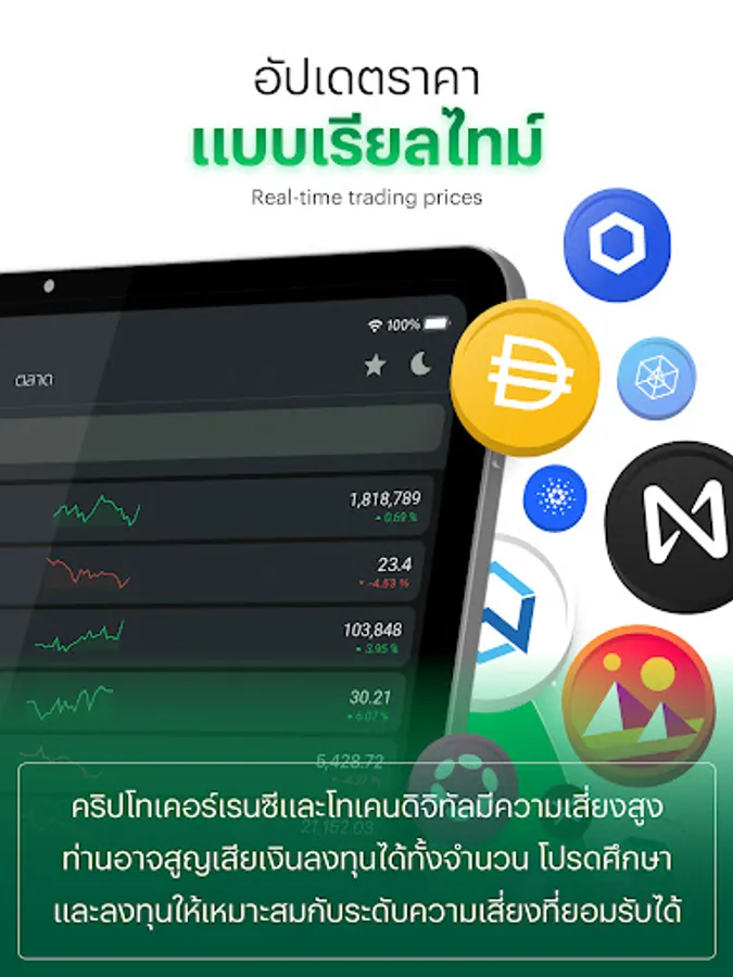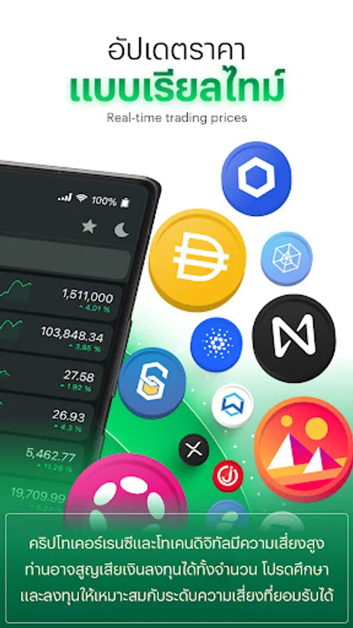 - คริปโทเคอร์เรนซีและโทเคนดิจิทัลมีความเสี่ยงสูง ท่านอาจสูญเสียเงินลงทุนได้ทั้งจํานวน โปรดศึกษาและลงทุนให้เหมาะสมกับระดับความเสี่ยงที่ยอมรับได้
