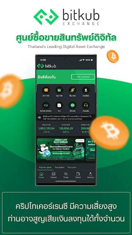 Bitkub (บิทคับ) คือกระดานเทรดสินทรัพย์ดิจิทัลรุ่นใหม่ที่ให้บริการซื้อขายสินทรัพย์ดิจิทัล (Cryptocurrency & Digital Token) สำหรับบุคคลหรือองค์กรที่สนใจเป็นเจ้าของเหรียญดิจิทัลระดับโลก ไม่ว่าจะเป็นบบ Bitcoin (BTC), Ethereum (ETH), Bitcoin Cash (BCH), Cardano (ADA), Ripple (XRP), Dogecoin (DOGE) และอีกมากมายกว่า 83 เหรียญ!