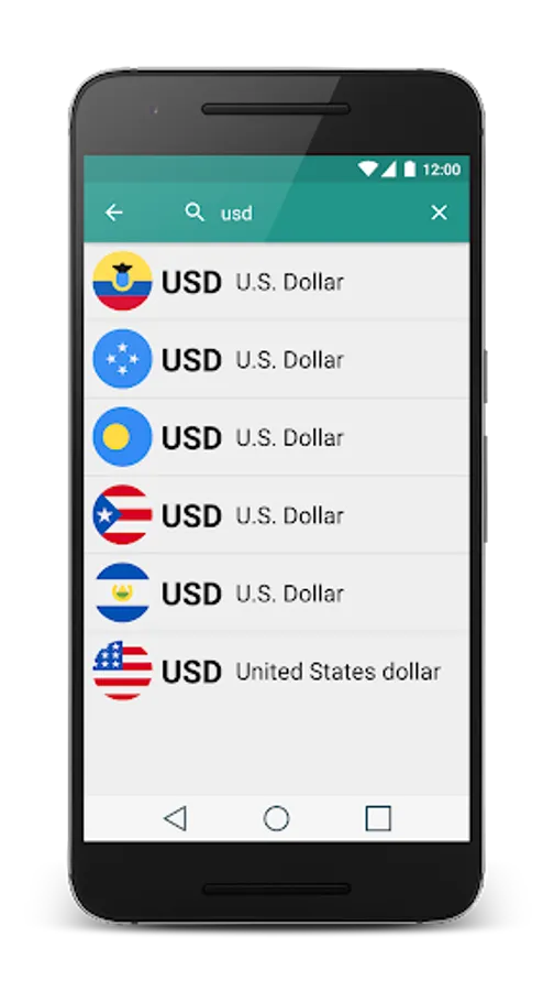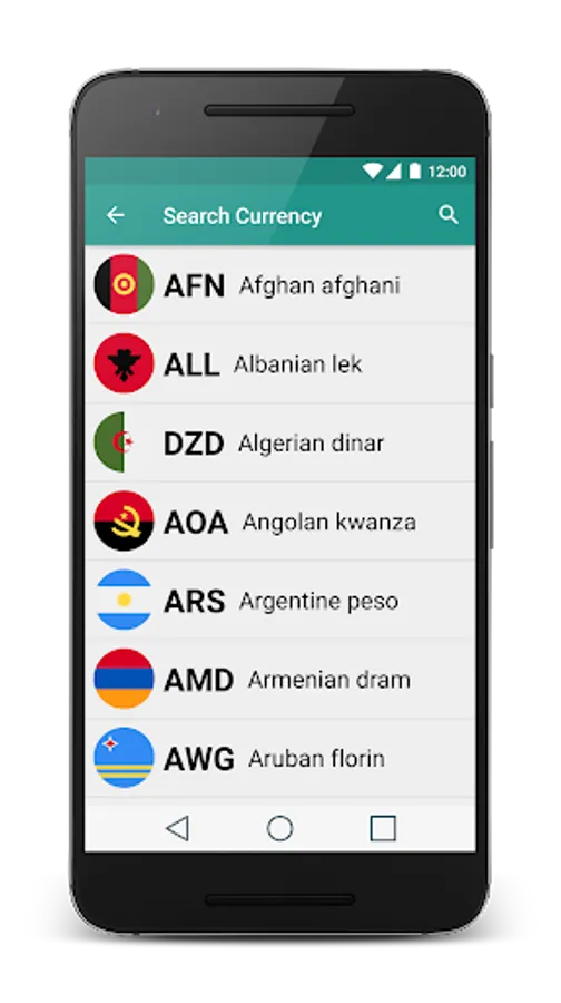 • Country flags per currency