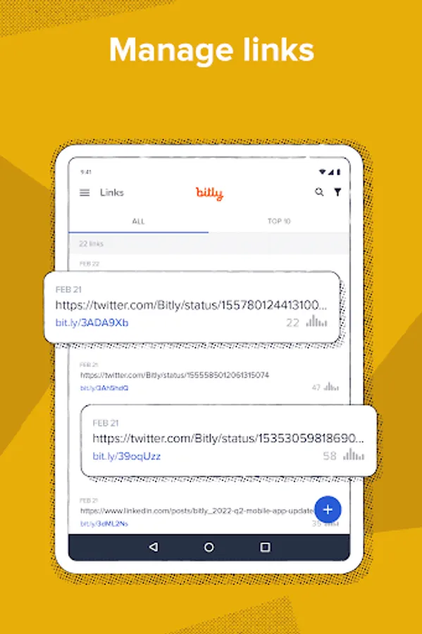 Take the Bitly Connections Platform with you wherever you go with the Bitly mobile app. All the products you need to build brand connections, manage links and QR Codes, and connect with audiences everywhere, in the palm of your hand.