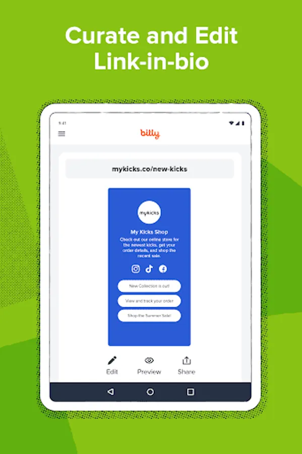 * Link-in-bio: Create and customize your link-in-bio page, organize and track your links and social icons, share content