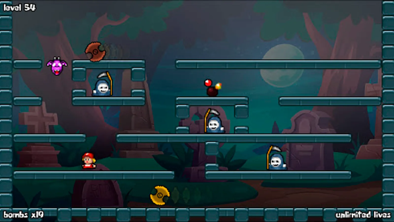"Bomb Trouble" rescues the spirit of those one-screen platform coin-ops for the enjoyment of those of us who lived in that golden age of video games... although it will also satisfy the most modern players, since its simple mechanics of game is suitable for any type of player.