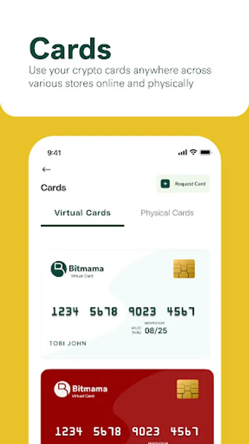 Spend globally without limits using Bitmama virtual cards. Make online payments in any country globally with your stablecoins - USDT, USDC, cUSD. Spend your crypto using Bitmama virtual cards without converting to fiat or selling on P2P. Pay Apple, Spotify, Amazon, Netflix and other subscriptions easily.