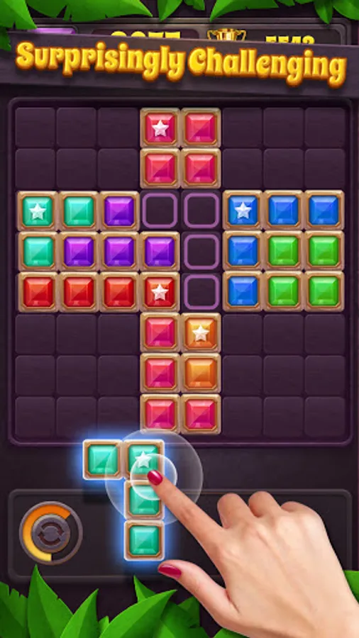 The goal is to clear the entire board with jewel blocks and collect valuable bonuses. Don't forget to keep the blocks from filling the grid! Add even more excitement by earning amazing combo bonuses and enabling block rotation with stars! No time limit, and no color match!